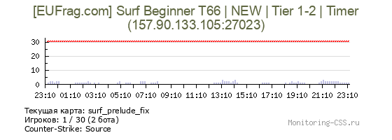 Адрес: 157.90.133.105:27023 Статус:онлайн Название: [EUFrag.com] Surf Beginner T66 | NEW | Tier 1-2 | Timer Описание: Counter-Strike: Source Игроки: 1 / 30 Боты: 2 Карта:surf_prelude_fix Мод:surf Версия: 9540945 Тэги: bunnyhopping,alltalk,66t,easysurf,ef,eufrag,no-steam,non-steam,nonsteam,nosteam,surf,surf_,surftimer,t66,tick66 Страна: Россия Пинг: ~ 53 мс (Пинг сответствует пингу от игрового сервера до мониторинга в Москве. Если Вы из другого города, то у Вас будет другое значение. См. в игре) Был опрошен: 2025-12-14 23:04:51 Был онлайн: 2025-12-14 23:04:51 График и статистика онлайна за последние 24 часа: